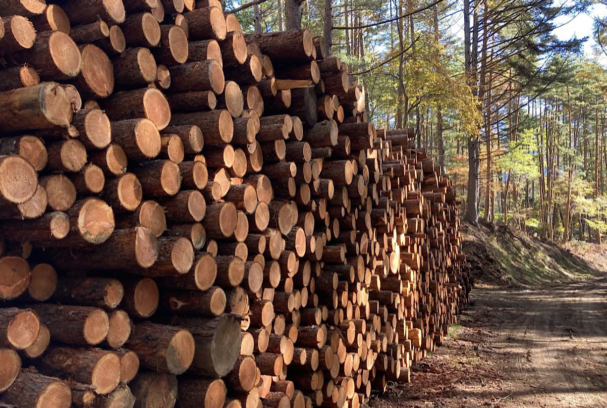 つなぐ里山では、人の手が入らなくなったことで荒廃しつつある森を生き返らせるため、特殊伐採・製材・搬出間伐を行い、そこから出た間伐材で精油をはじめとする加工品を生産・販売しています。